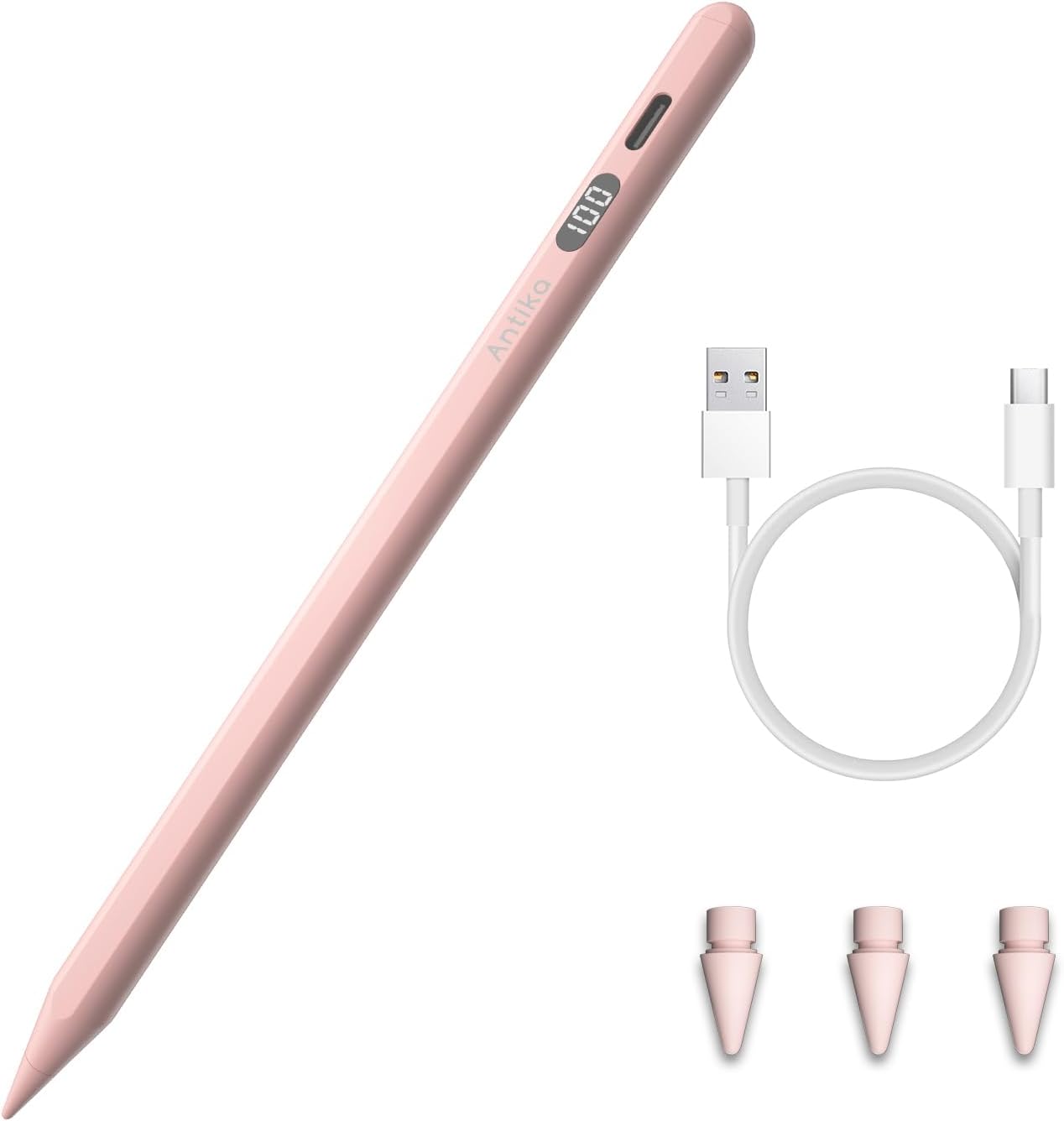 Antika’s iPad Stylus (6.5x0.35 in., 0.04 lbs) in pink offers 10-hour battery, tilt sensitivity, and palm rejection. For iPad Air 3/4/5, Mini 5/6, 6-10 Gen, Pro 11. Magnetic USB-C charging. 1-year warranty.